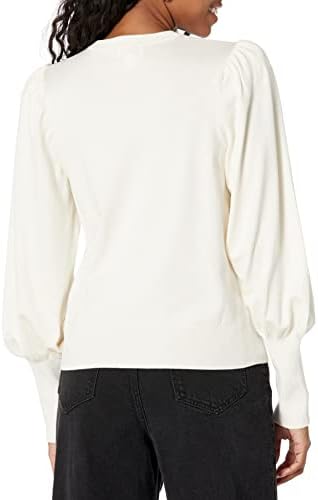 A perfect mix of retro power shoulders with soft shoulder pads in a feminine silhouette, full sleeves, and high rib cuffs. This fine knit sweater made from sustainable rayon is best styled tucked into high waist denim for a casual-yet-elevated look.