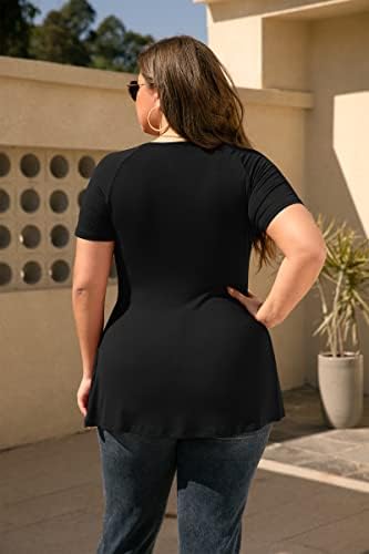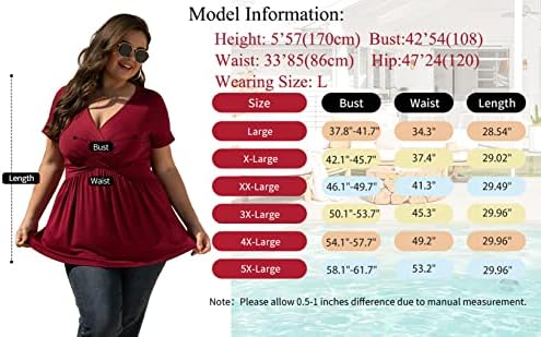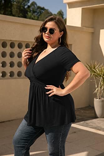 ❀【Stylish Design】This womens plus size short sleeve tops, feature wrap v neck detail,a little low cut and tindy bit of cleavage showing, elegant yet sexy; middle empire waist belt as a decoration, make you look more slim and created a more flattering look in style. Long enough to cover your hips and belly. This plus size shirts for women suit for spring & summer & fall.
