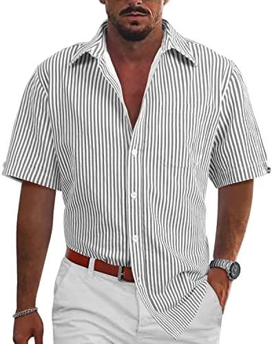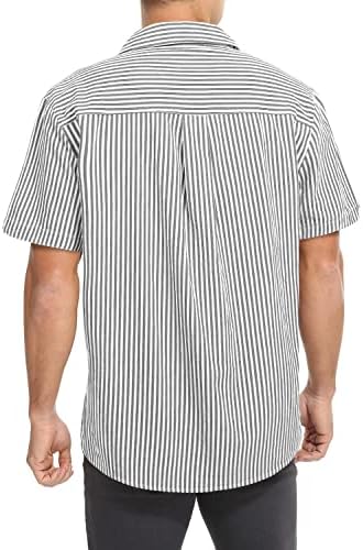 【Mens Casual Short Sleeve Shirt】: This casual regular fit striped shirts is designed with banded collar, short sleeve, button-front closure and one chest pocket.You can wear it as a casual shirts or as a dress shirts