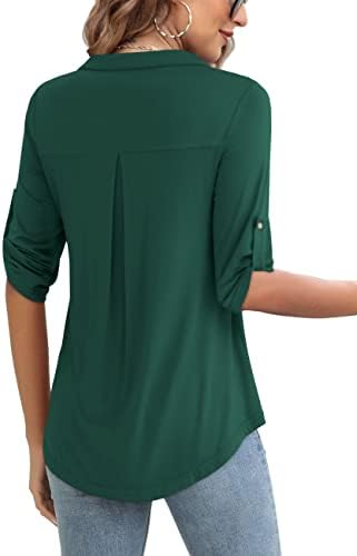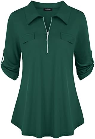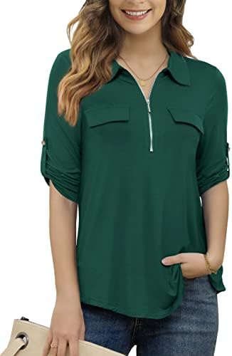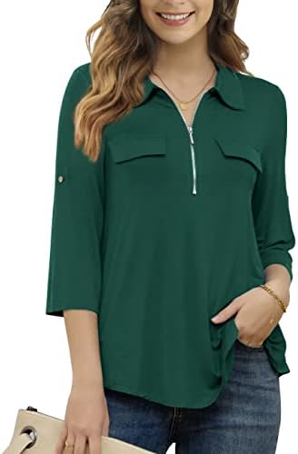 U.Vomade Women’s 3/4 Sleeve Collared Plus Size Tops Zip Front V Neck Blouses