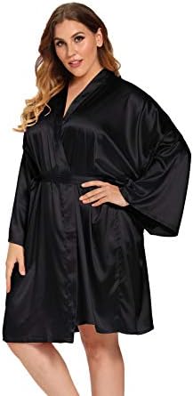 V Vaborous’ selection of plus size robes are just what you’ve been searching for! Our plus size satin robes are perfect for everything from lounging around the house, everyday sleepwear to wedding gifts.The fabric of our plus size robe is specially selected for skin-friendly lingerie robe. They are made of quality stretch satin fabric (95% polyester and 5% spandex).Our luxury plus size robes are tailored for plus size women and you can buy them confidently.Model’s Size: Height:5.64ft–Bust:39.37″–Hips:44.09″/She Fits Size 1X and the kimono robe is roomy fit.