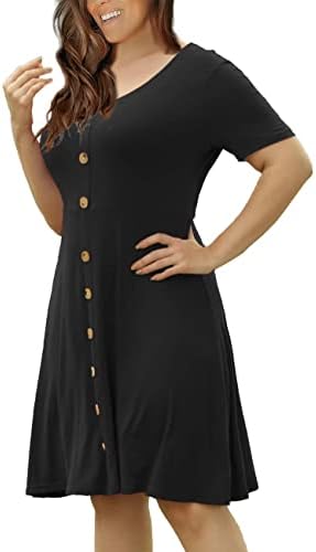 VOIANLIMO Women’s Summer Plus Size Short Sleeve Button Down Causal Dress