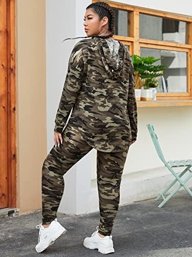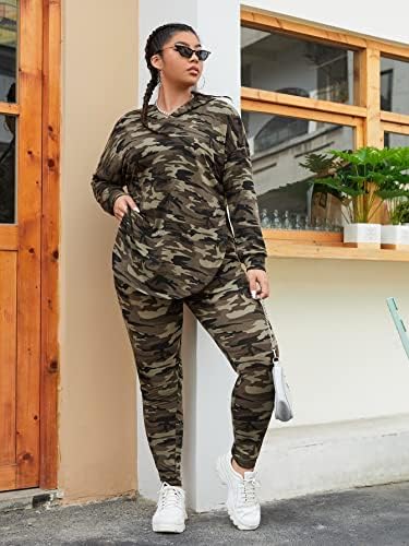 Women’s Plus Size 2 Piece Outfit Camo Print Long Sleeve Hooded Sweatshirt and Leggings Set