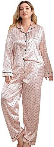 WDIRARA Women’s Plus Size Sleepwear Contrast Binding 2 Piece Satin Pajama Set Loungewear