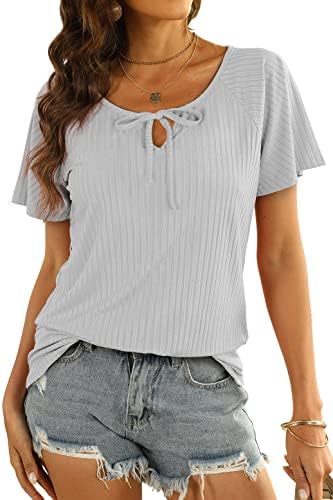 Features: Cute Summer Tops for Women, Plain Tshirts, Short Sleeve Shirts, Ruffle Sleeve Tops, Tie Front Neck Tunic Shirts, Fashion Clothes 2022.