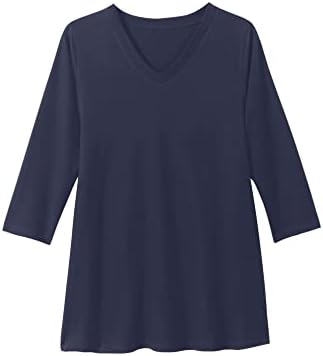 One of our most popular perfect tees, this V-neck style fits the comfort factor with a pure cotton fabrication and relaxed fit. Three-quarter sleeves cover the arms but allow for easy movement, and a longer tunic length hits perfectly at the upper thigh for coverage.