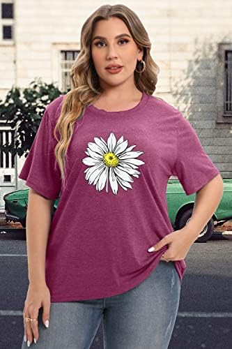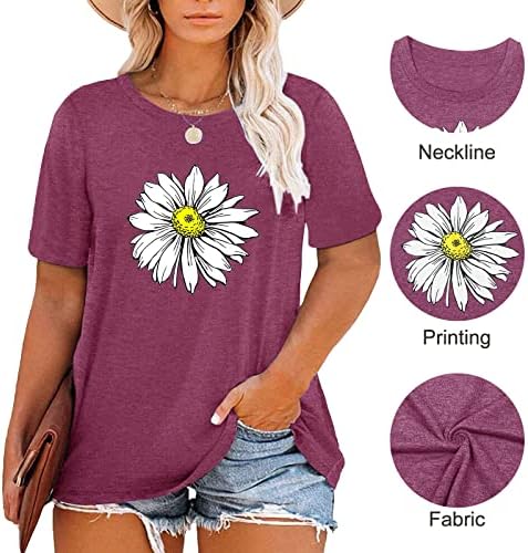 plus size shirts for women features: Sunflower graphic tees vintage shirts, funny daisy flower print shirt, summer short sleeves graphic tee shirts for women. funny cute casual summer trendy tops.