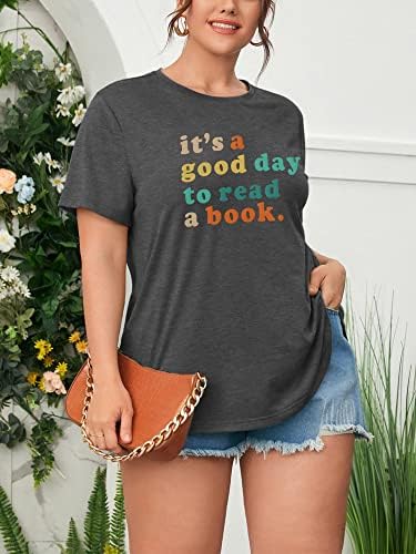 Women Plus Size Tops Feature: It’s A Good Day to Read A Book Funny Saying Graphic Tees, Oversized Book Reading Lovers Shirt Top, Vintage Teacher Shirts, Funny Librarian Gift Tee Tops, Casual, Loose, Colorful Letter Print Design