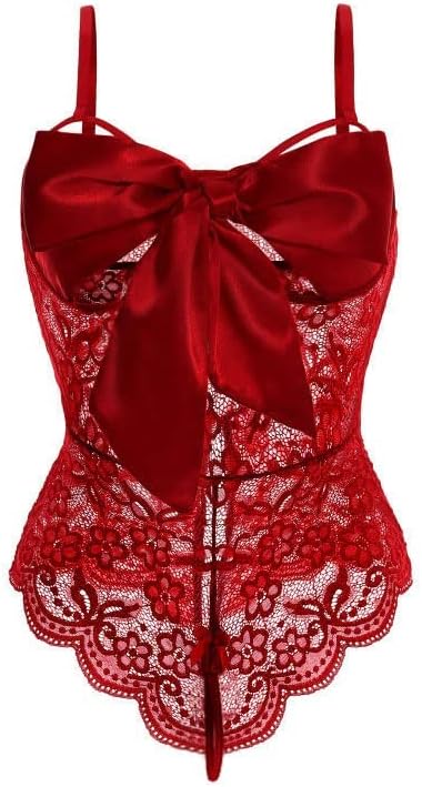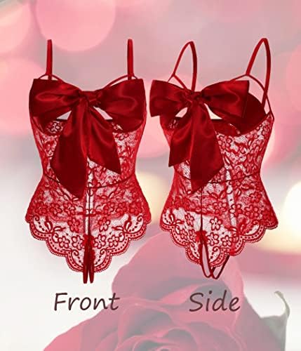 Design: Give your honey a surprise in this lace teddy featuring adjustable shoulder straps, self tie stain ribbon bow, slit bottom and and a cheeky cut back. It’s like unwrapping a gift! Easy to adjust, Fits stunning on you. The bow is the perfect element of surprise and the outfit overall was a hit.Tips: Please use the O-ring to fix the ribbons