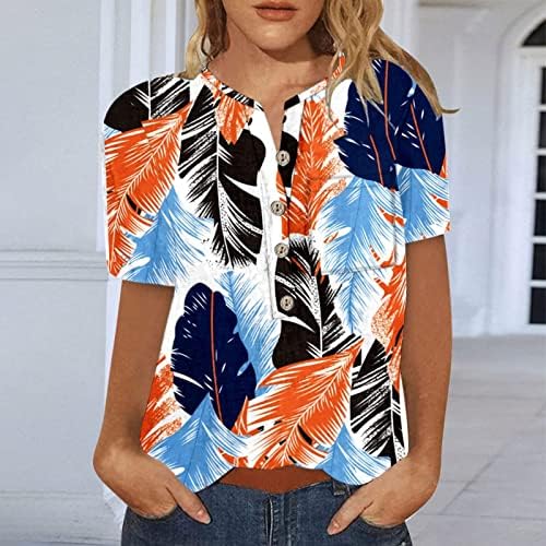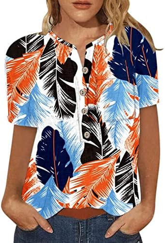 Women’s Shirts And Blouses Casual Fashion Cotton Linen Printed Short Sleeve Shirt Dress Shirts
