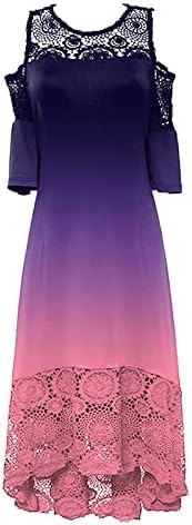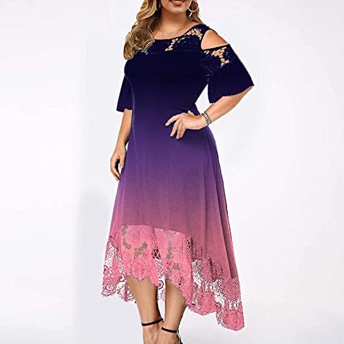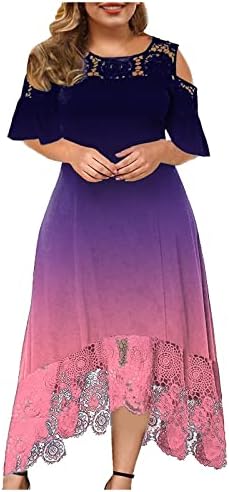 Ruffle Sleeve Cocktail Womens Midi Summer Basic Wedding Patchwork Stretchy Evening Dresses Lace Comfort Solid