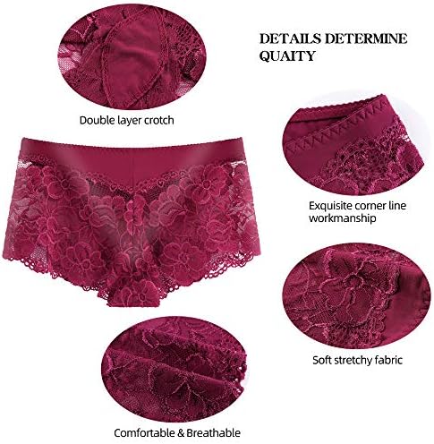 Women’s Underwear Regular & Plus Size Panties Sexy Lace Boyshort Hipster Cheeky Panty- 6 Pack