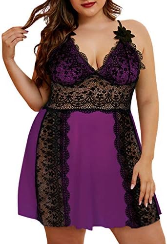 ❀ Features—Plus size lingerie babydoll feature with floral lace V neck,a cute flower on the shoulder straps,sexy crisscross back for a curve look.