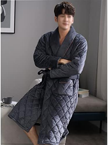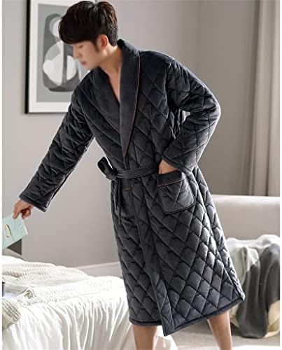 The bathrobe features two hand pockets at the waist for easy carrying of essentials and keeping hands warm.